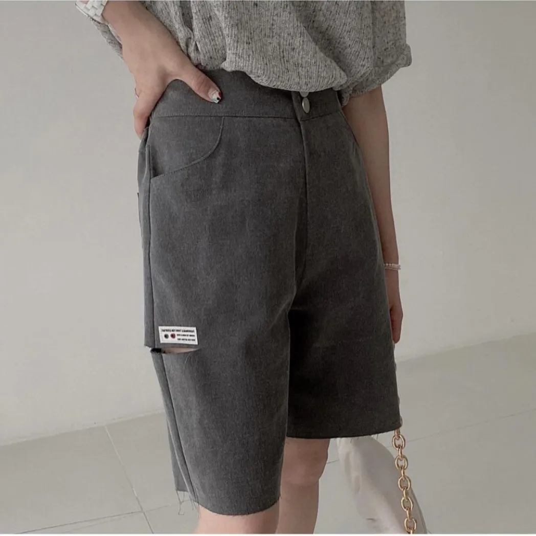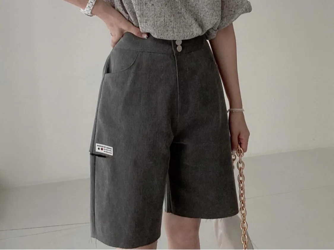 側褲管割破車小布標五分褲