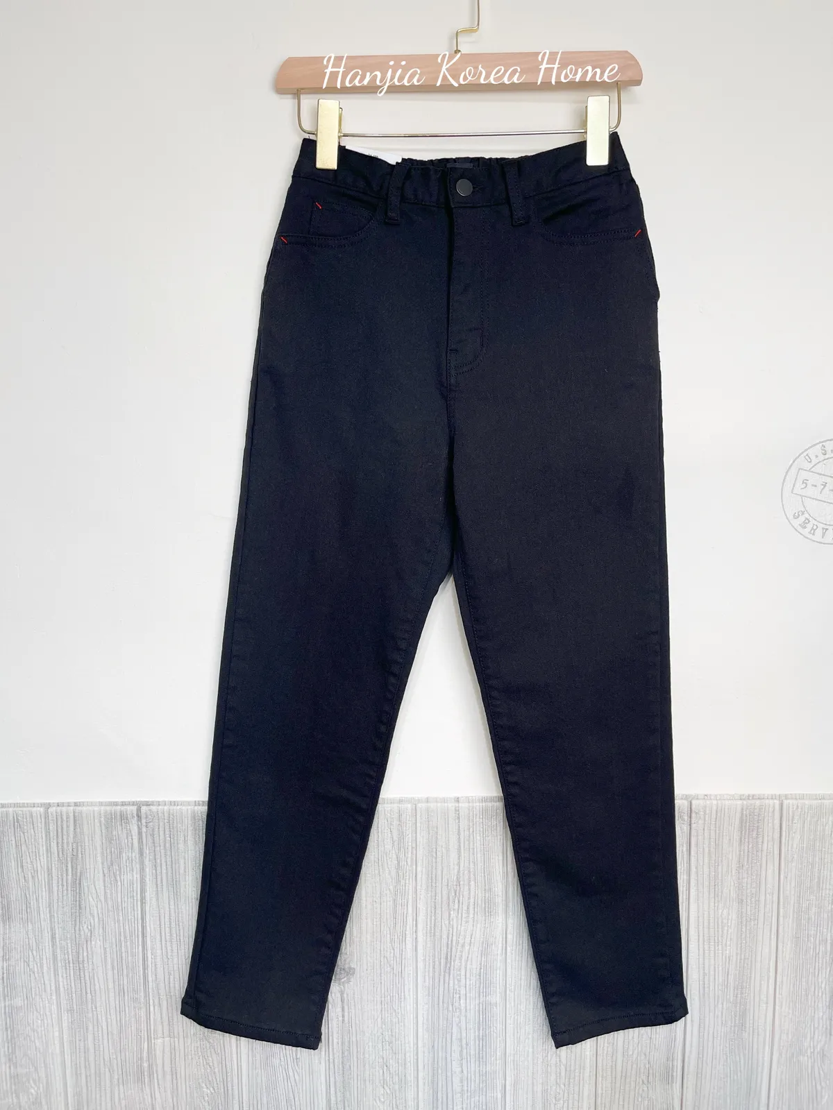 腰鬆緊內刷絨彈性小直筒褲