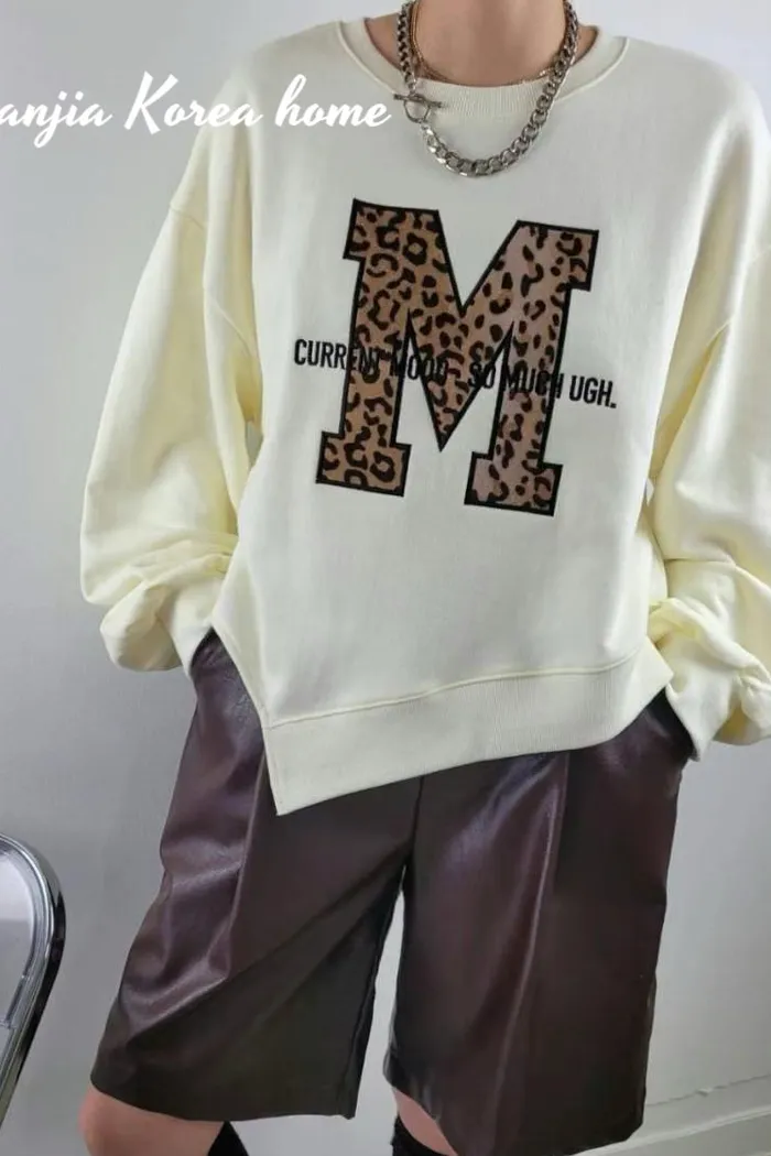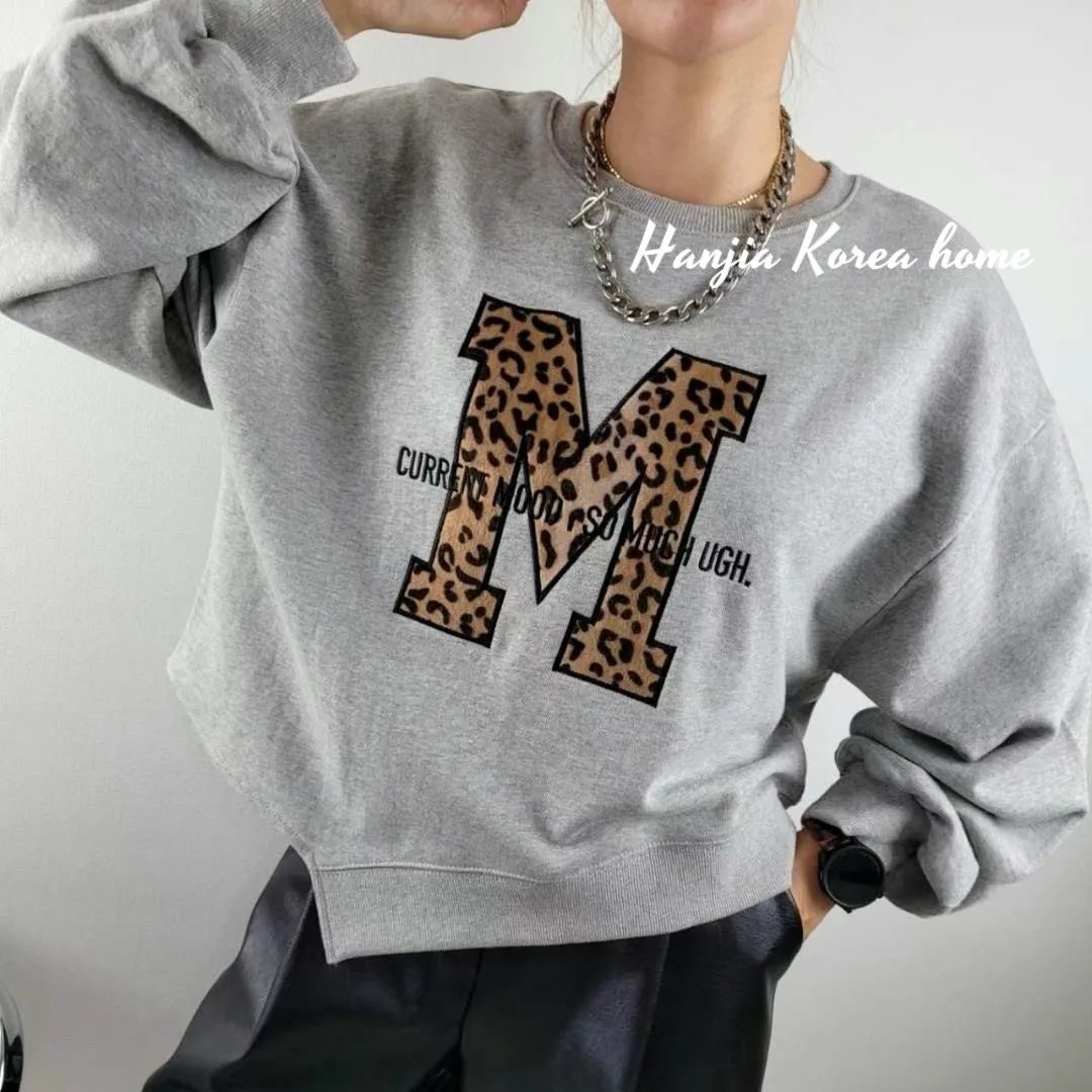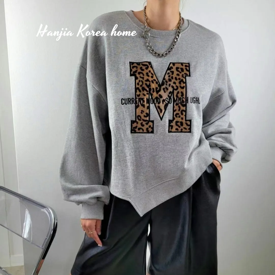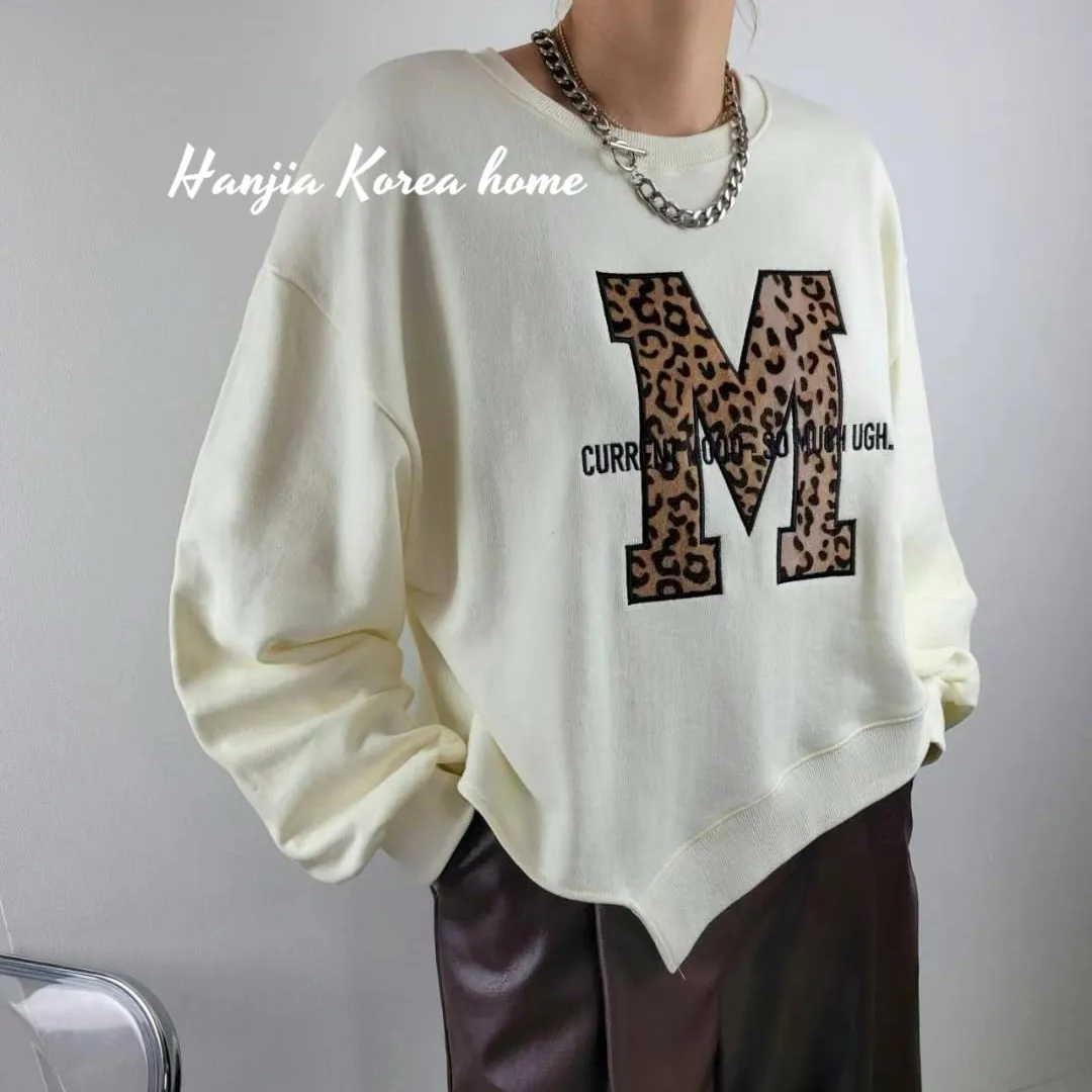 M字豹紋下擺不規則大學T