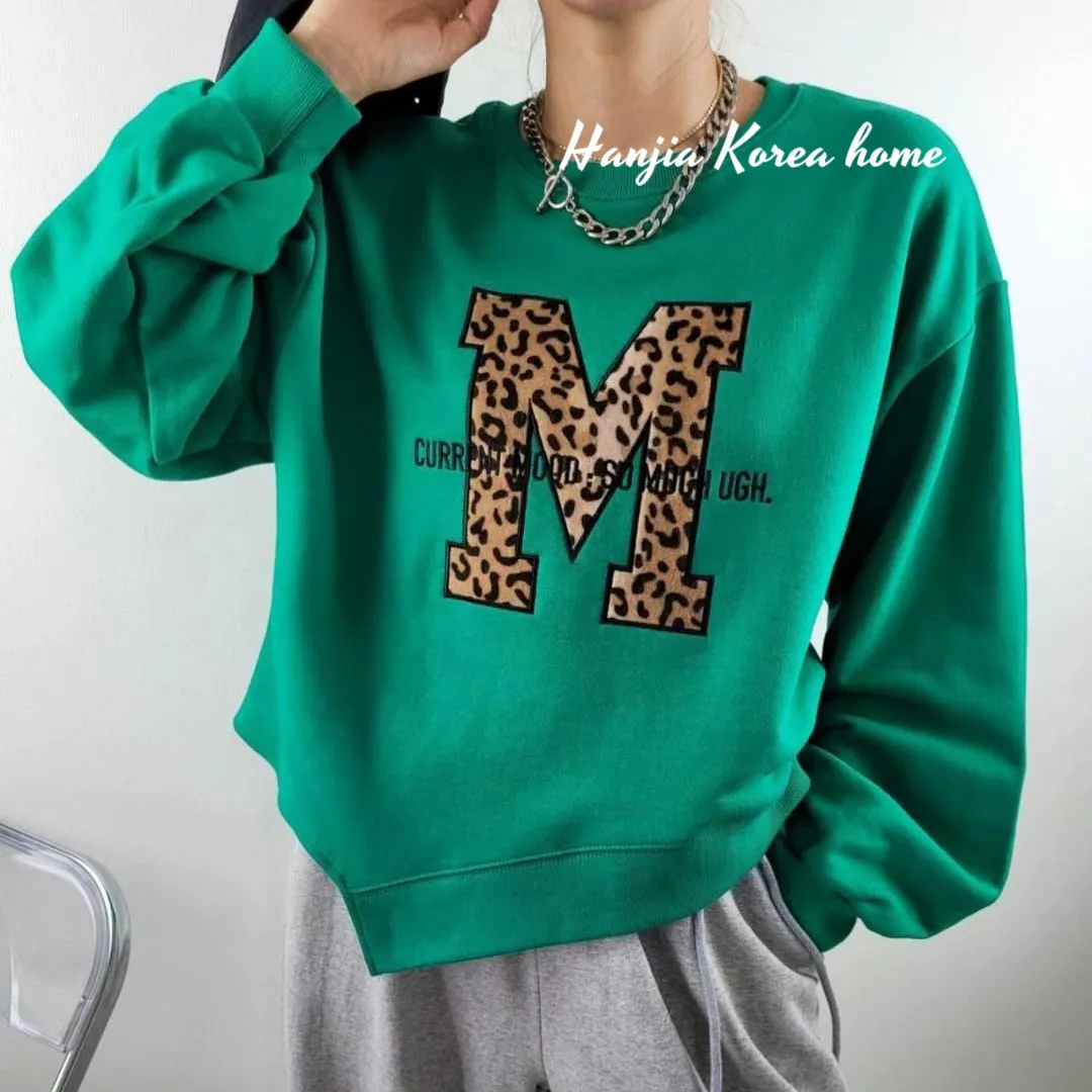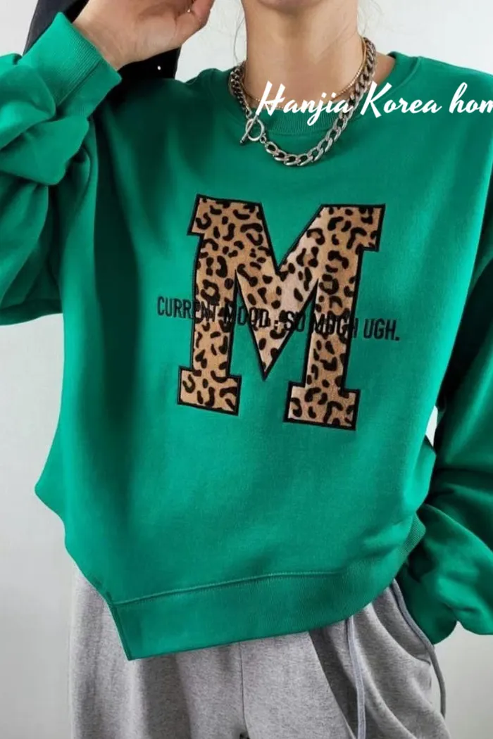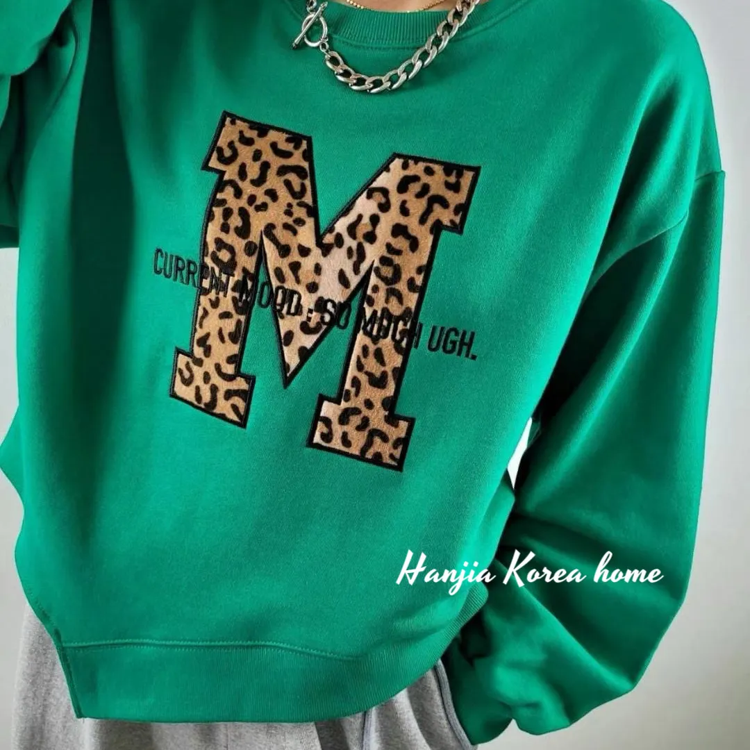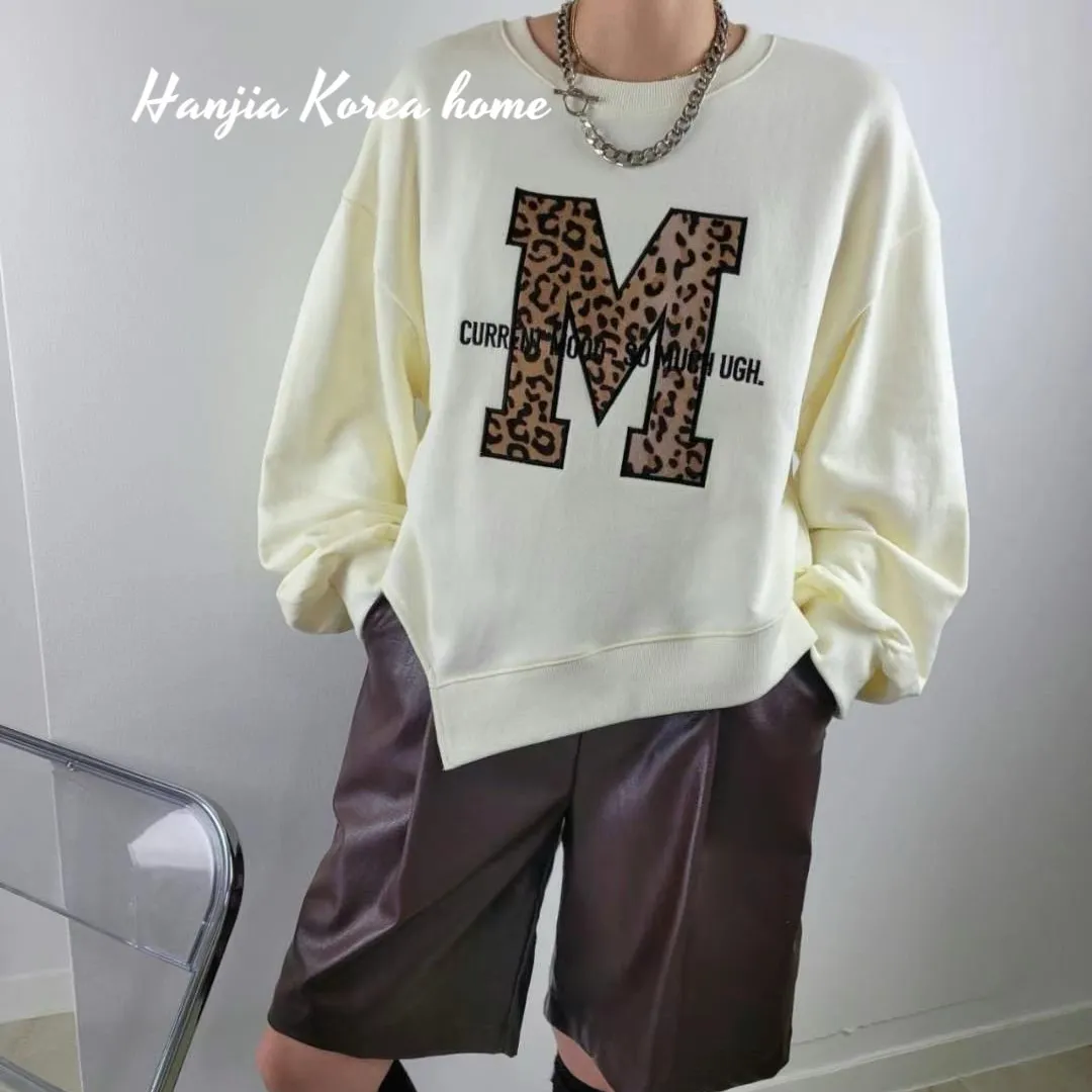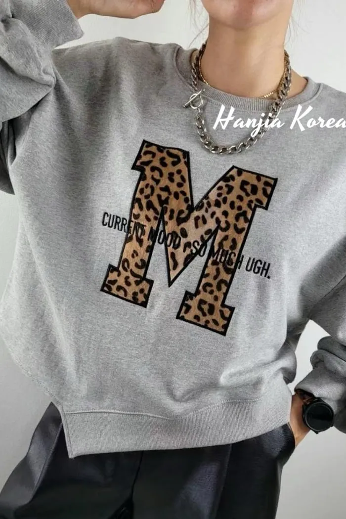 M字豹紋下擺不規則大學T