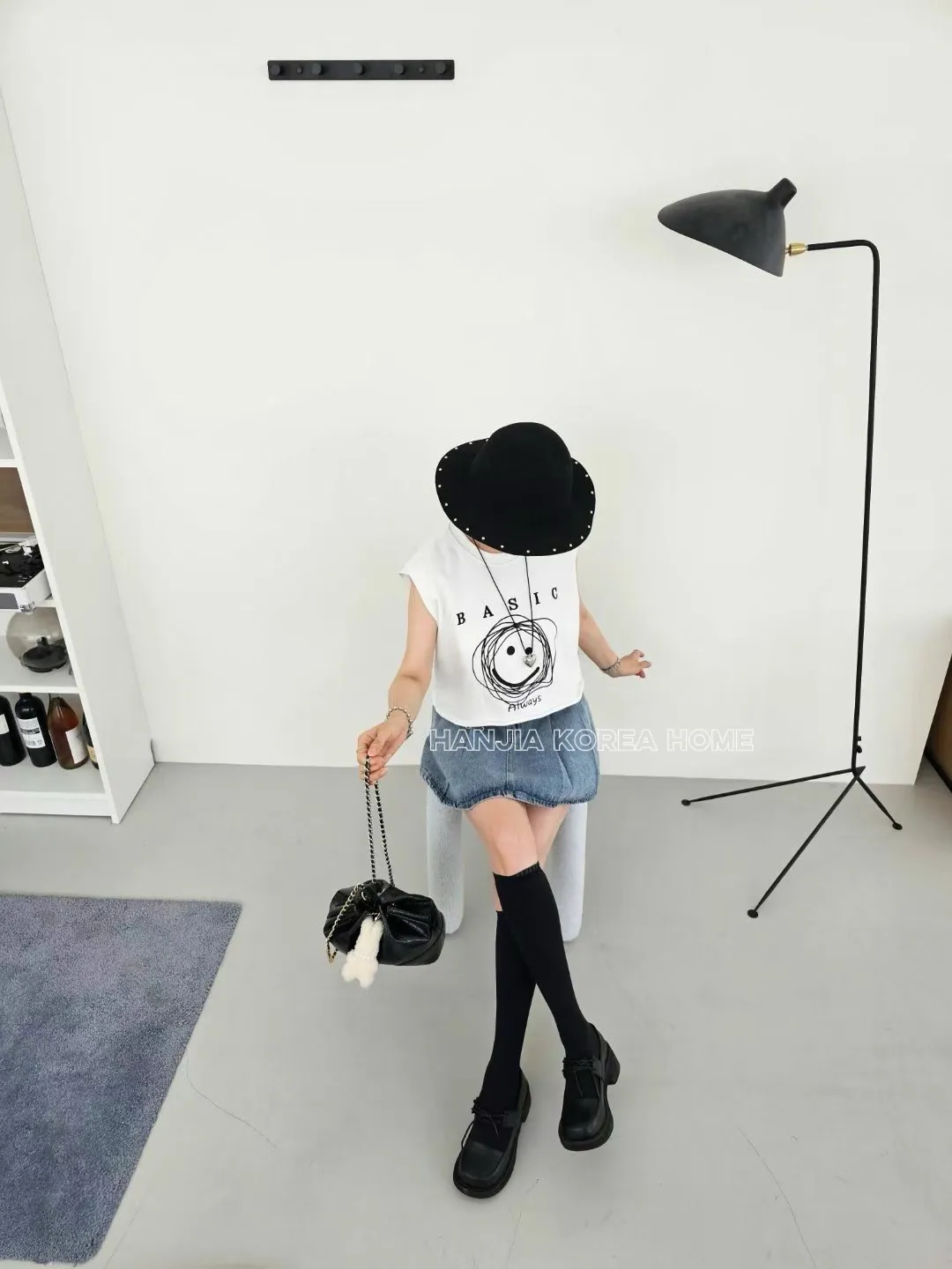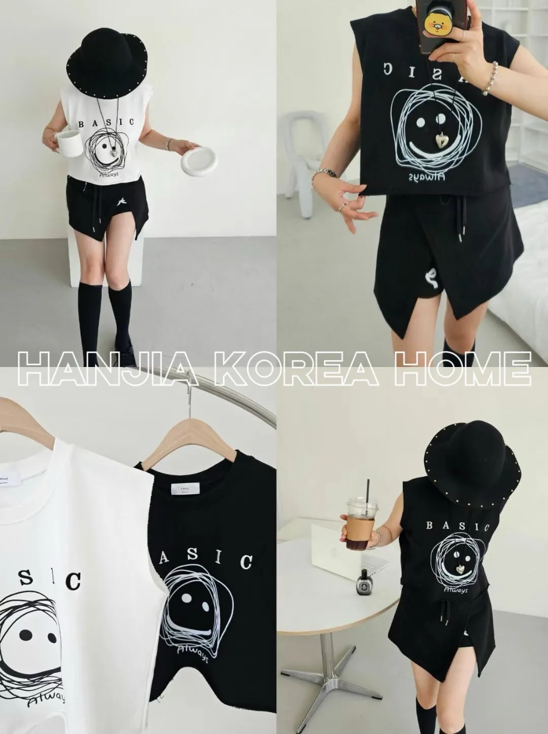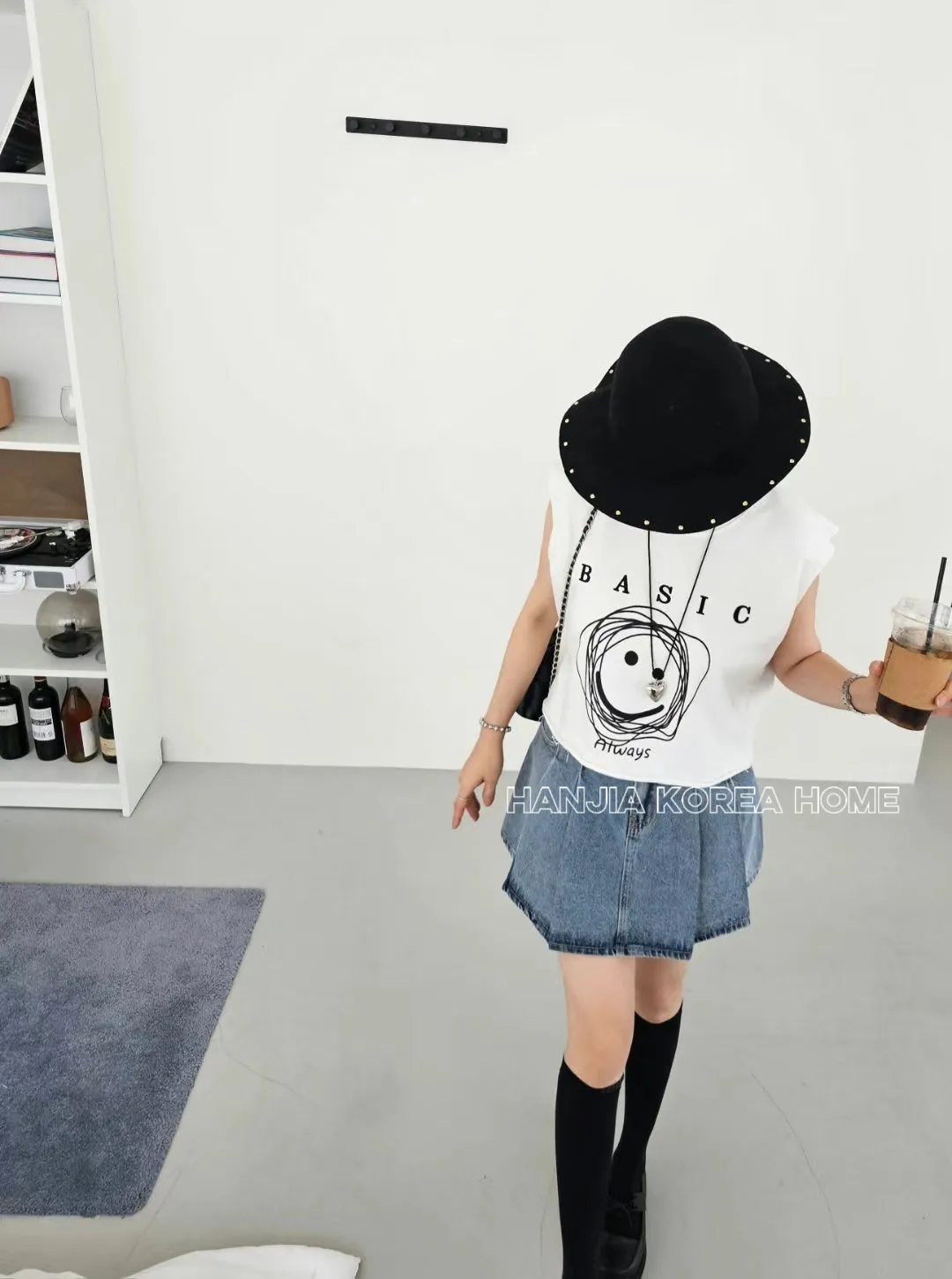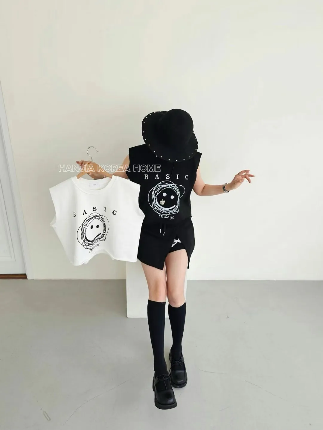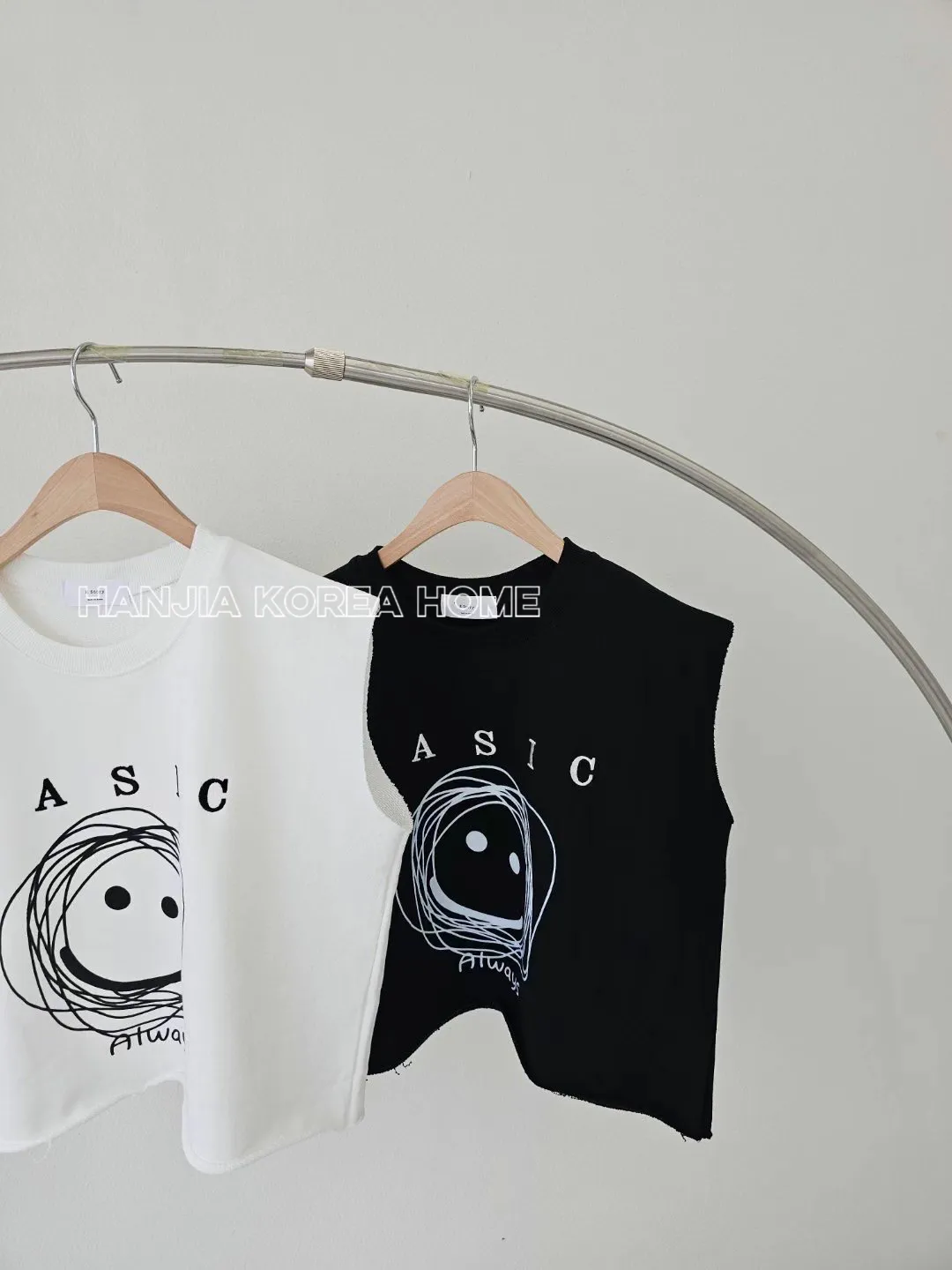 塗鴉笑臉刺繡英文字無袖短版上衣