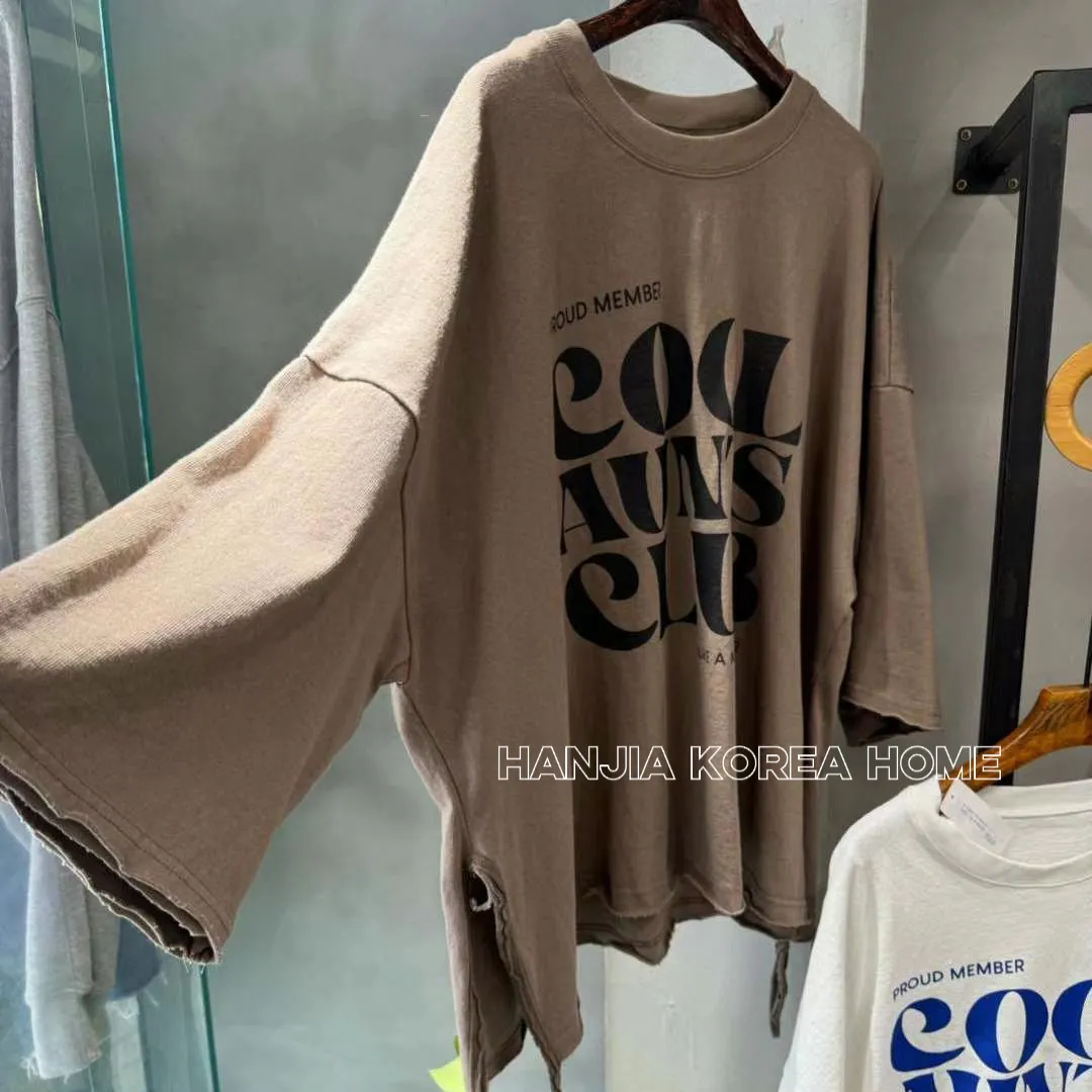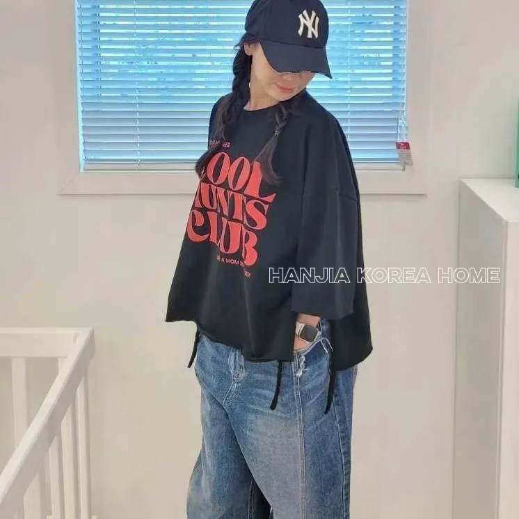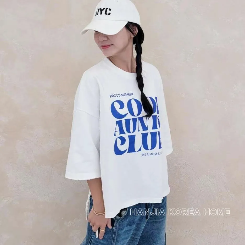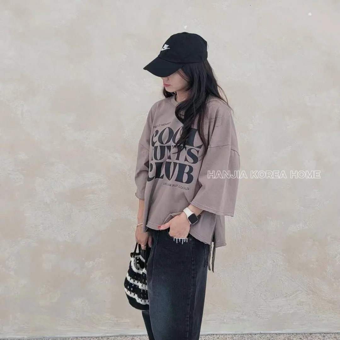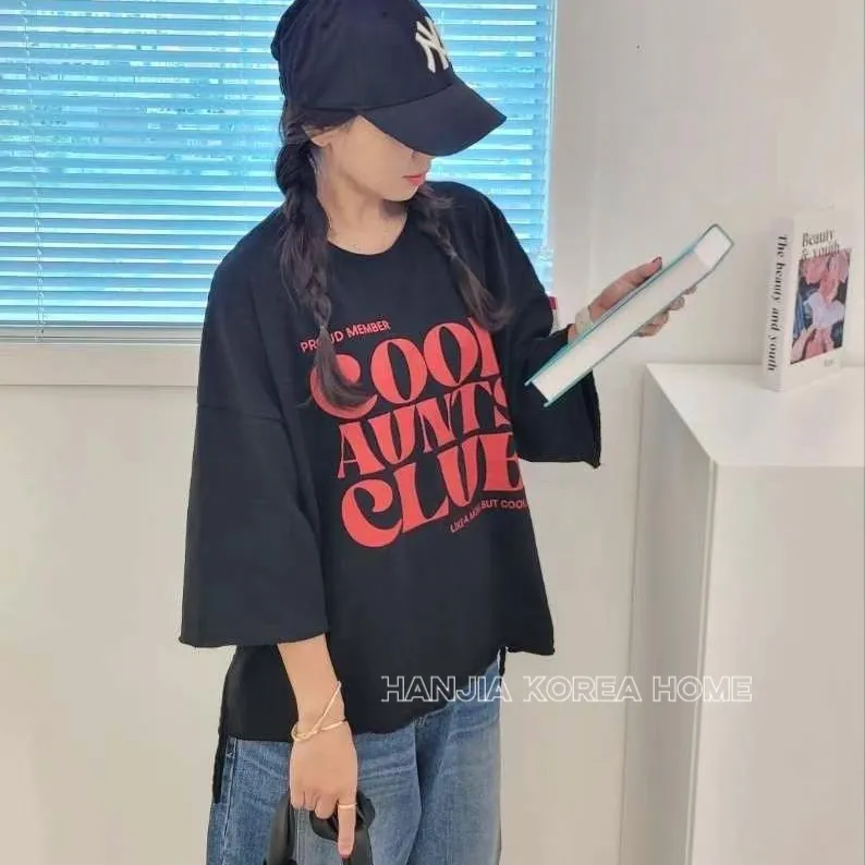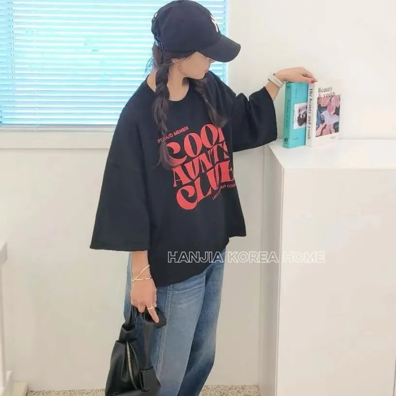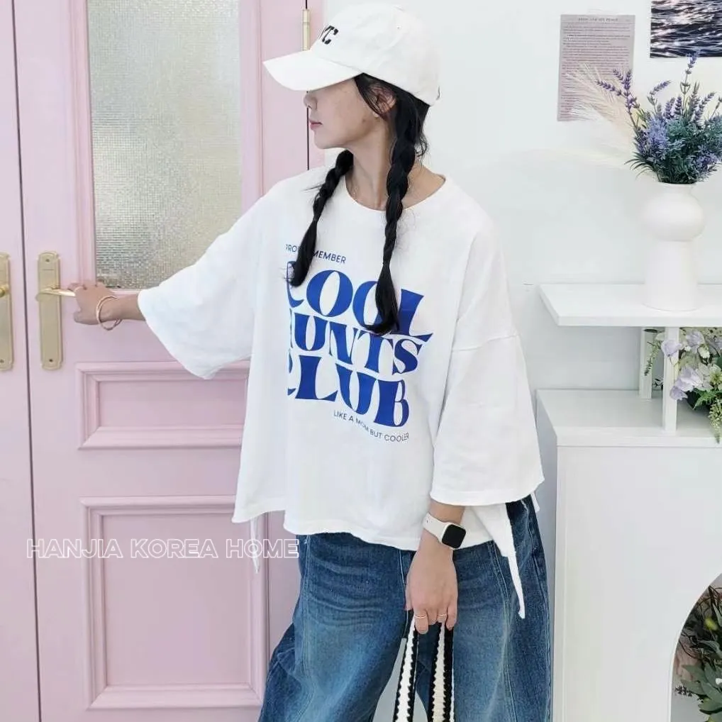 英文字寬鬆七分袖棉T