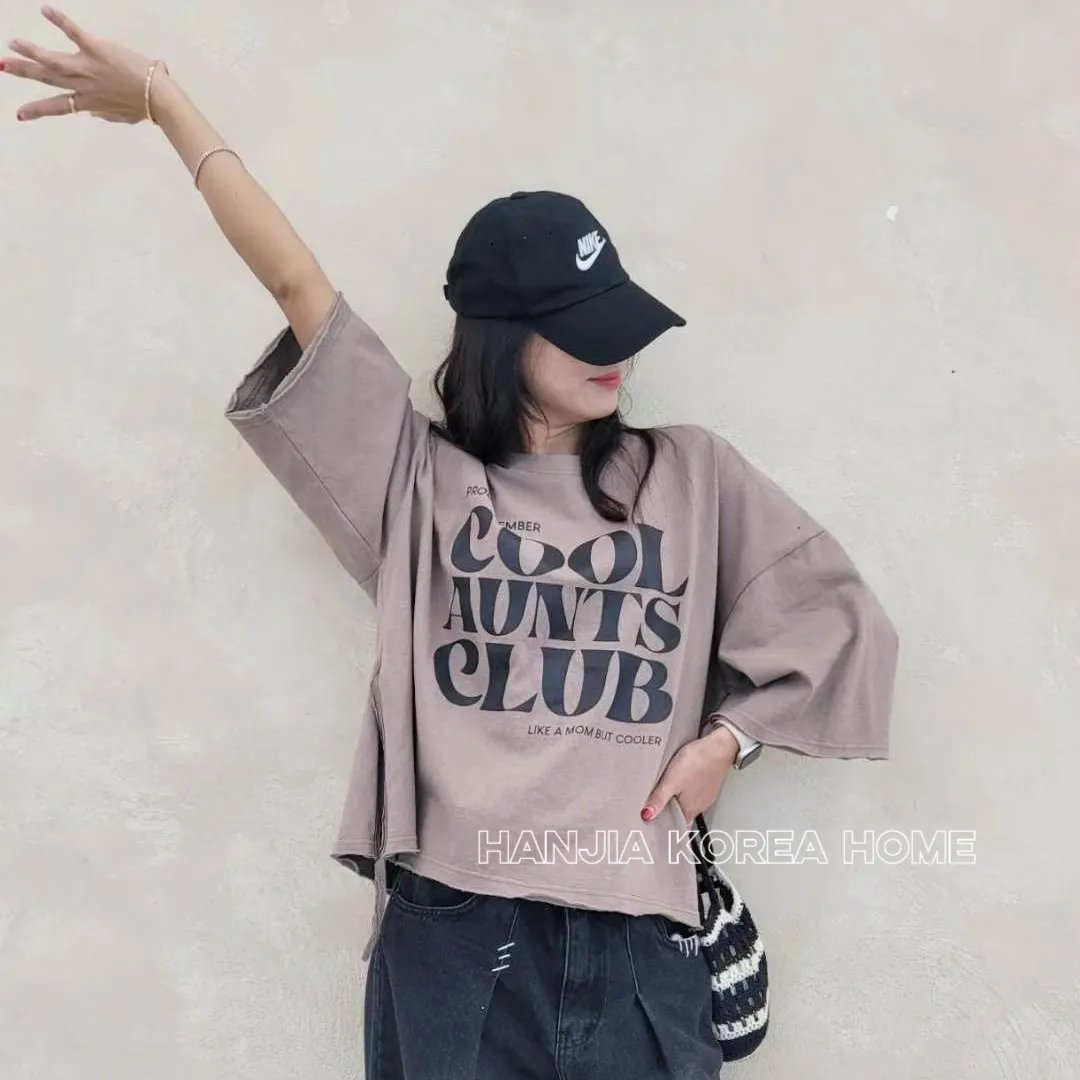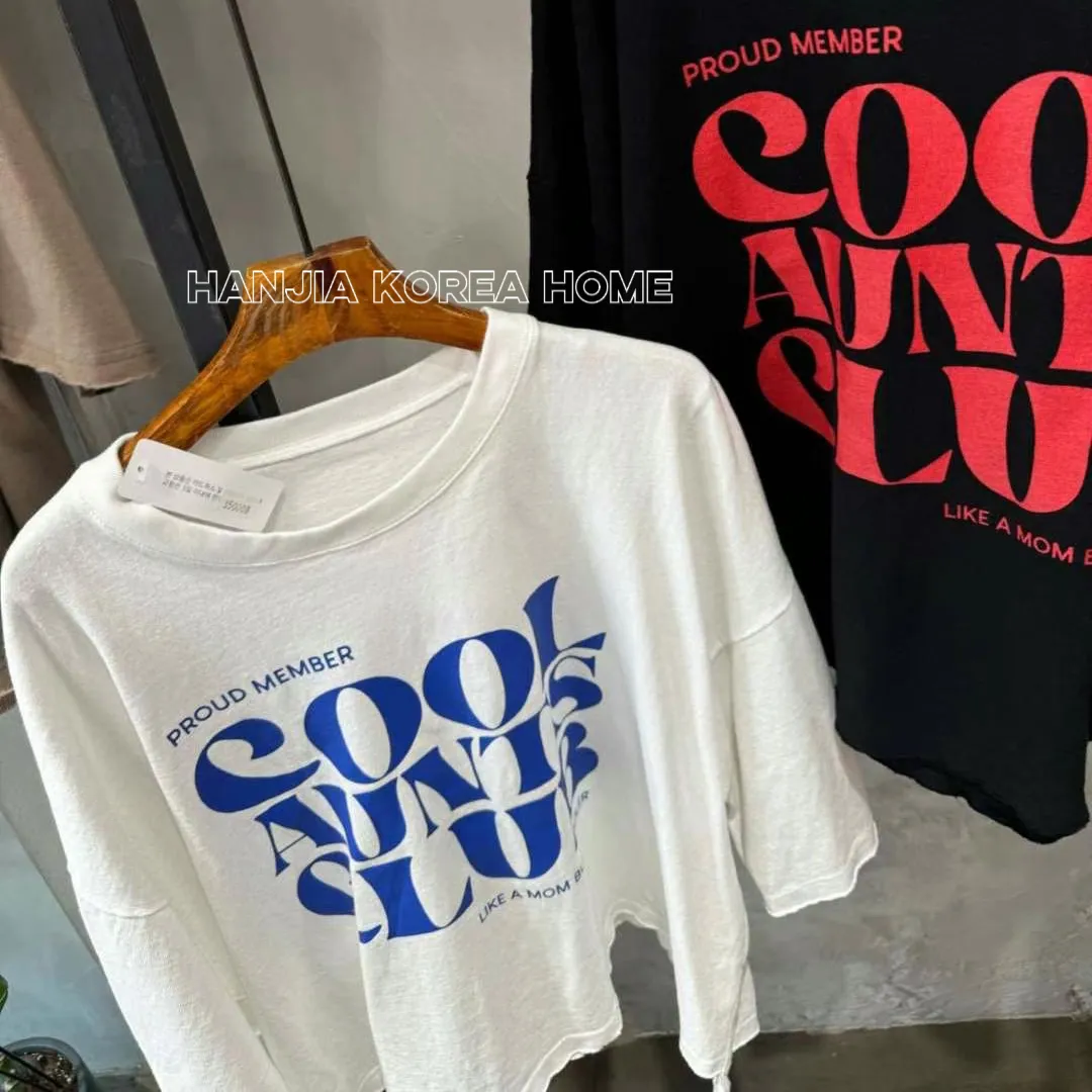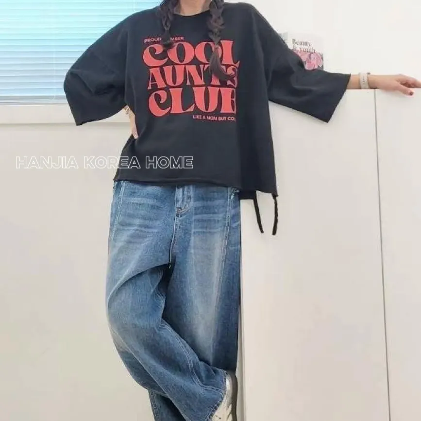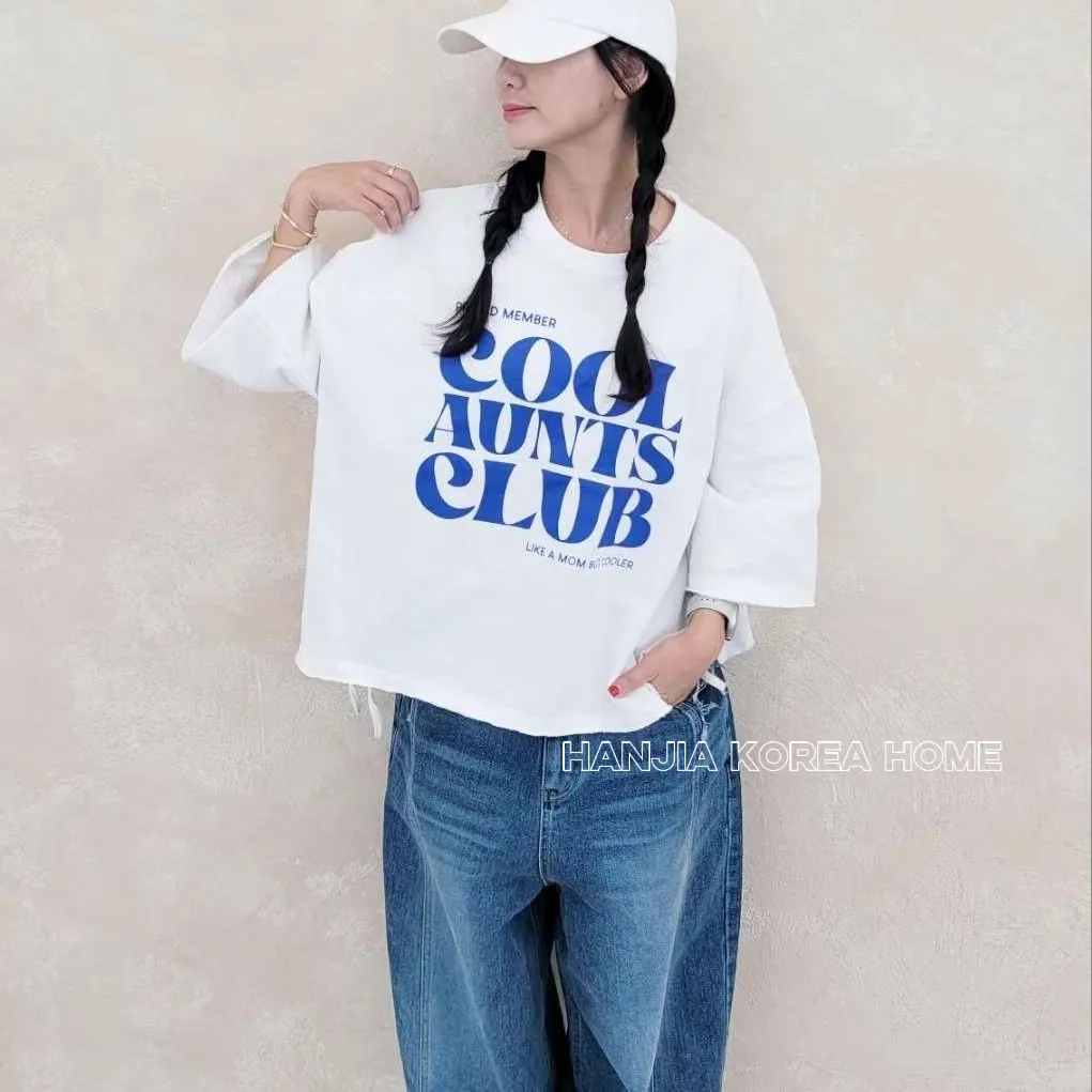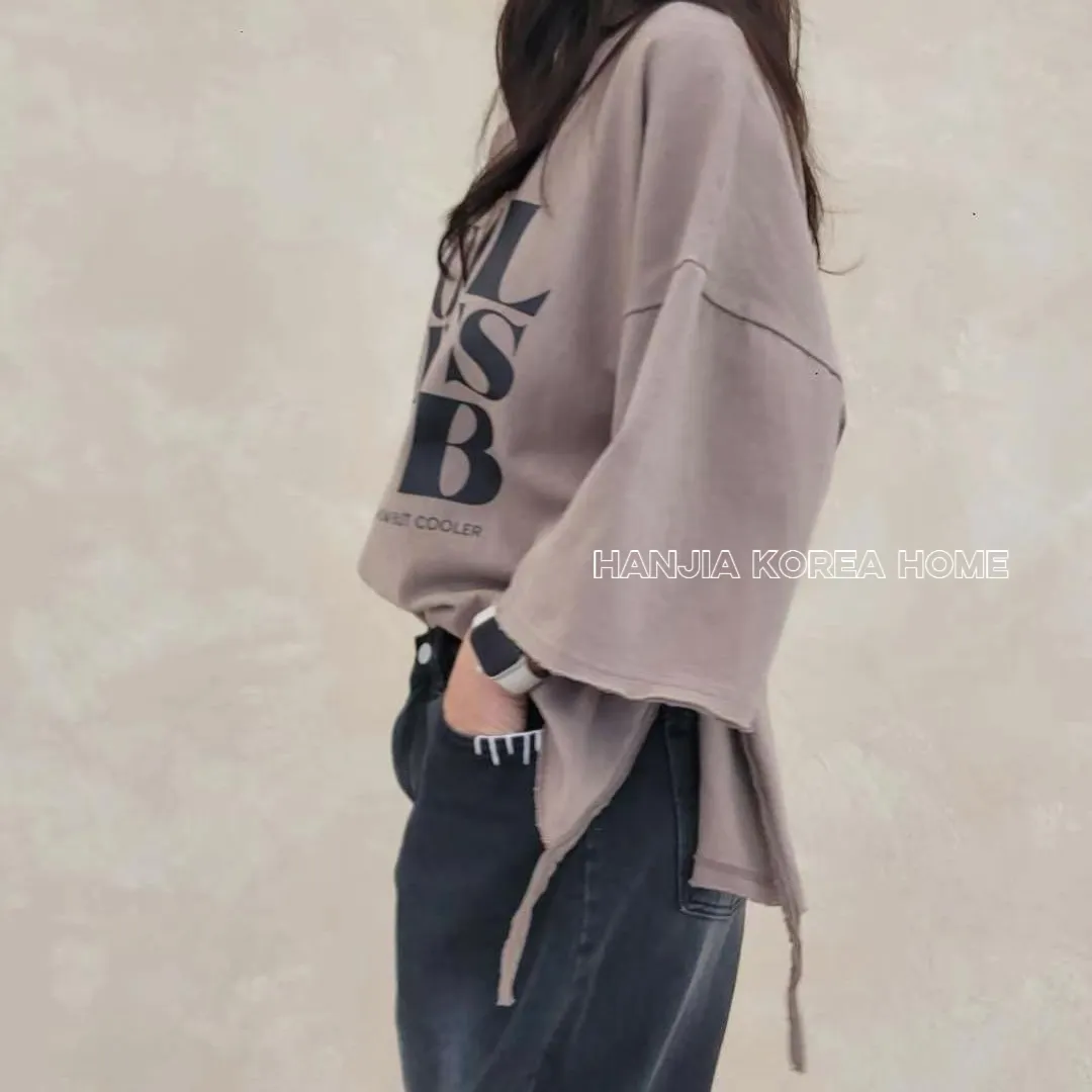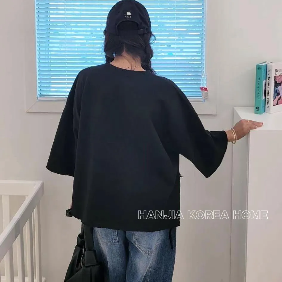 英文字寬鬆七分袖棉T