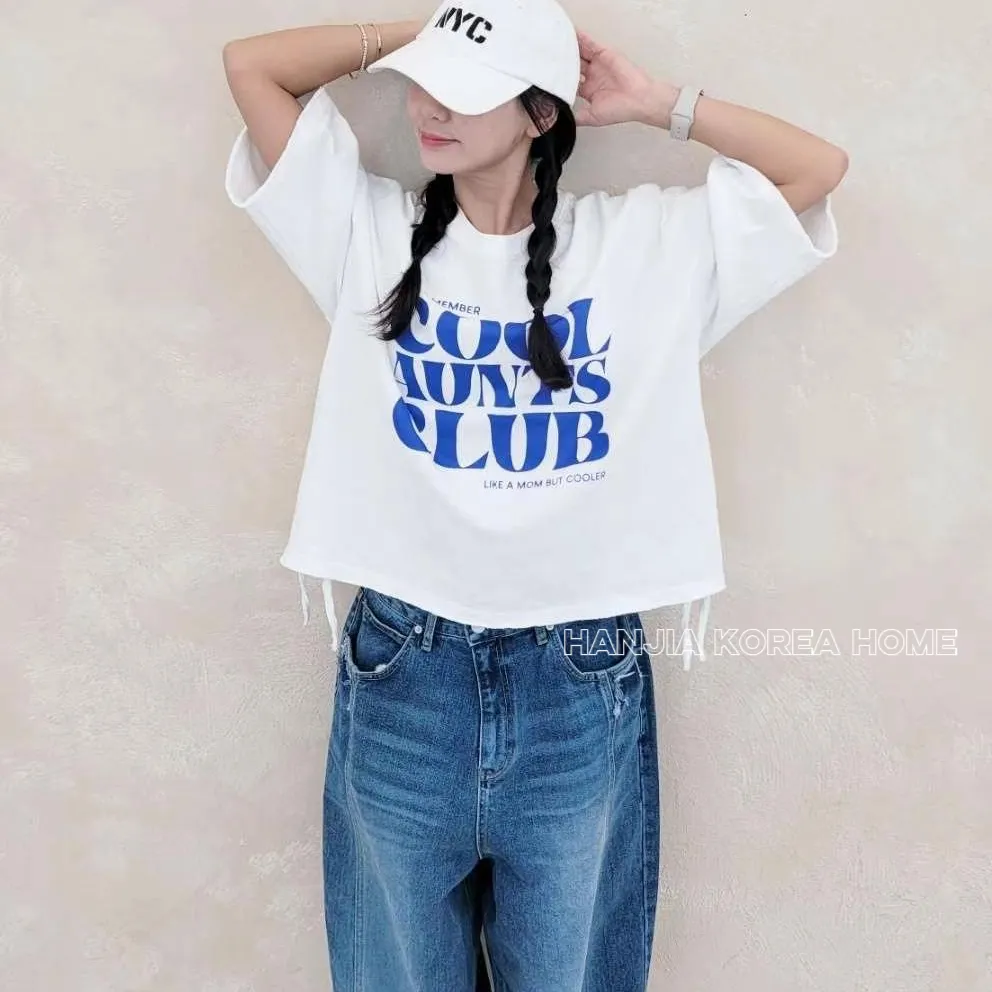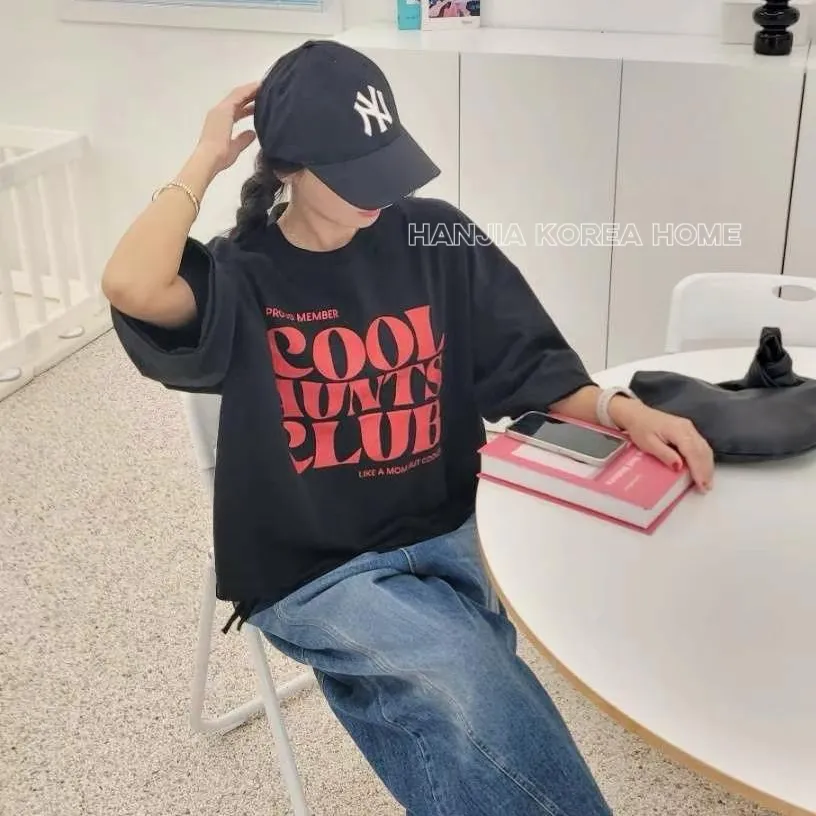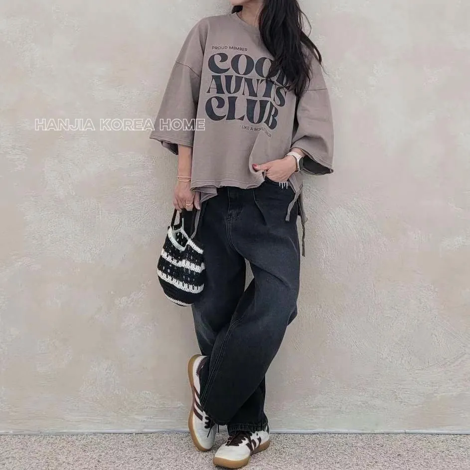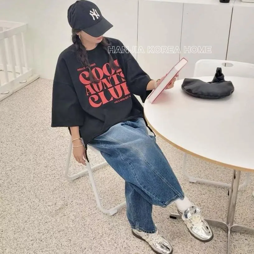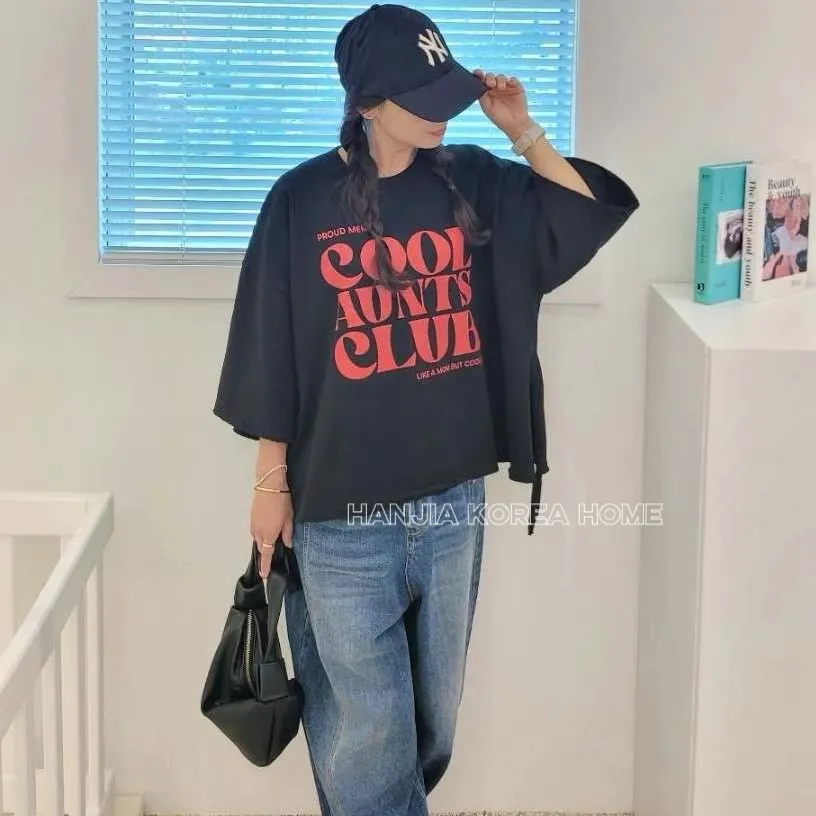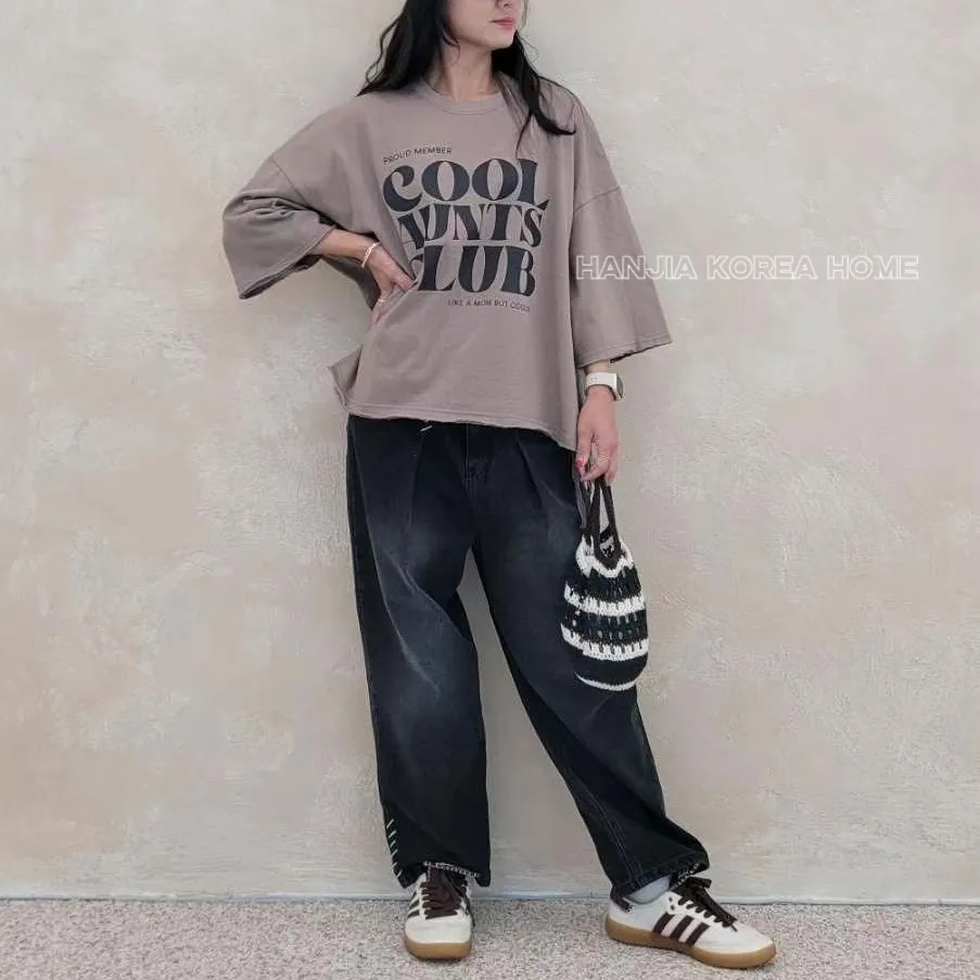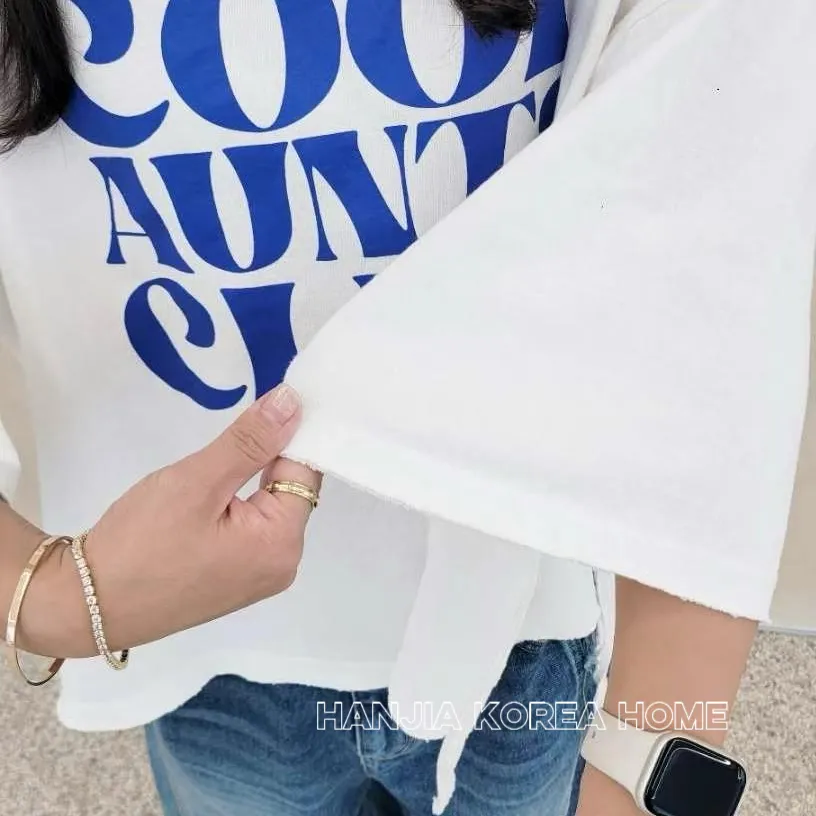 英文字寬鬆七分袖棉T
