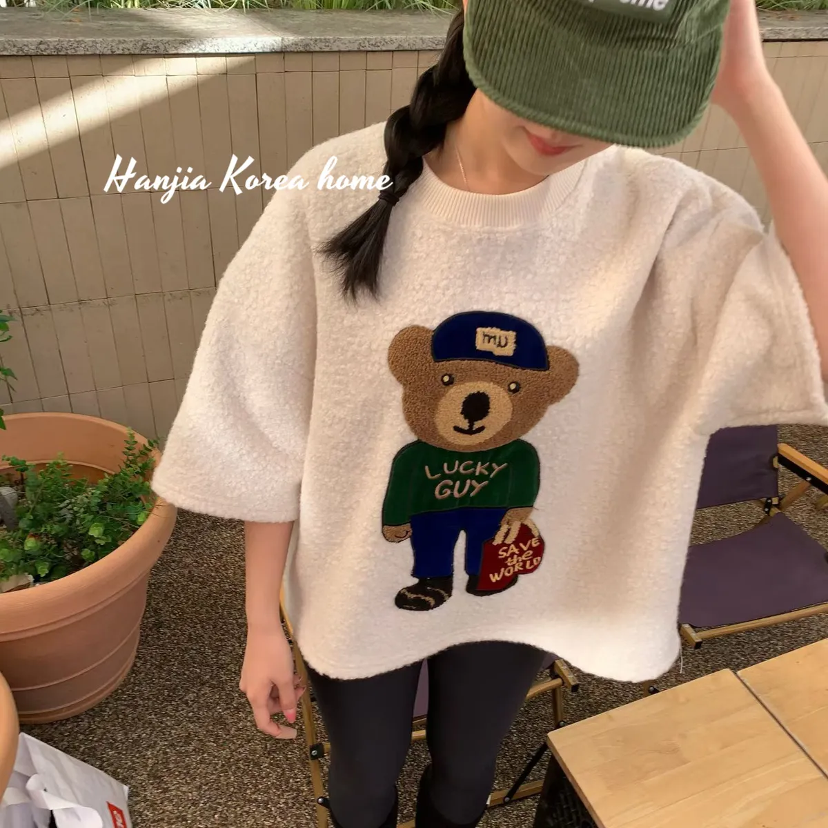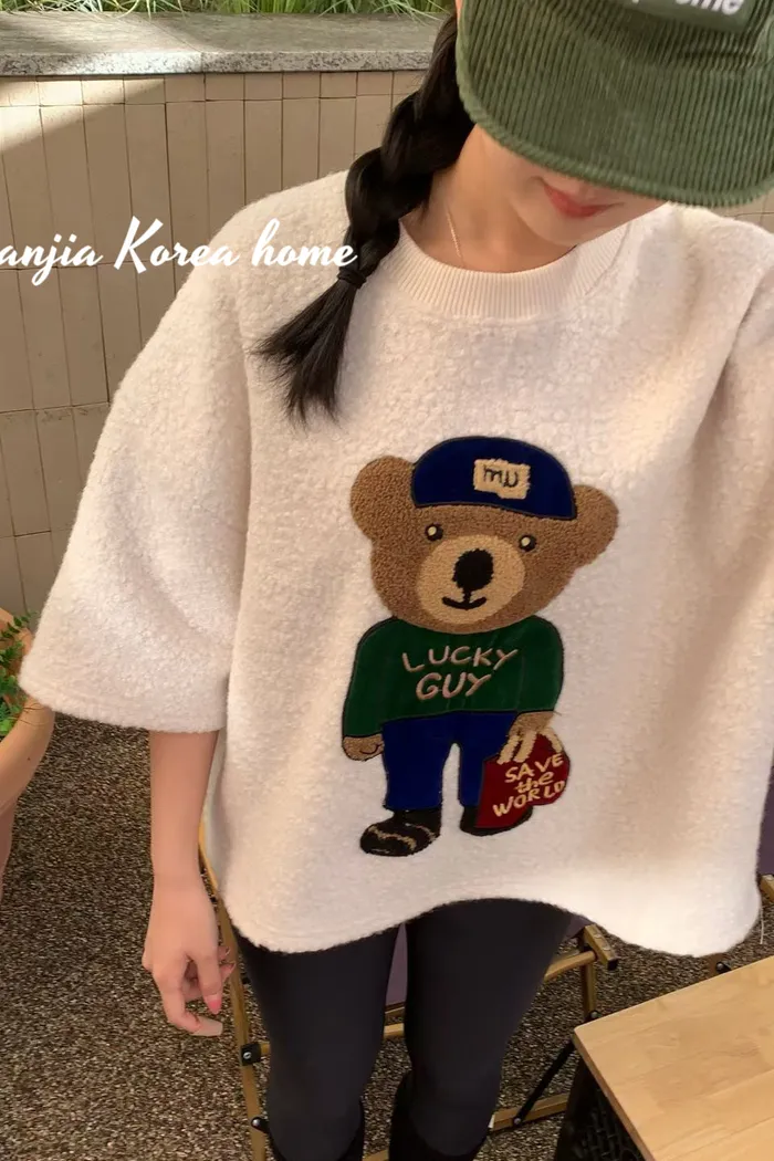 熊熊QQ毛六袖上衣