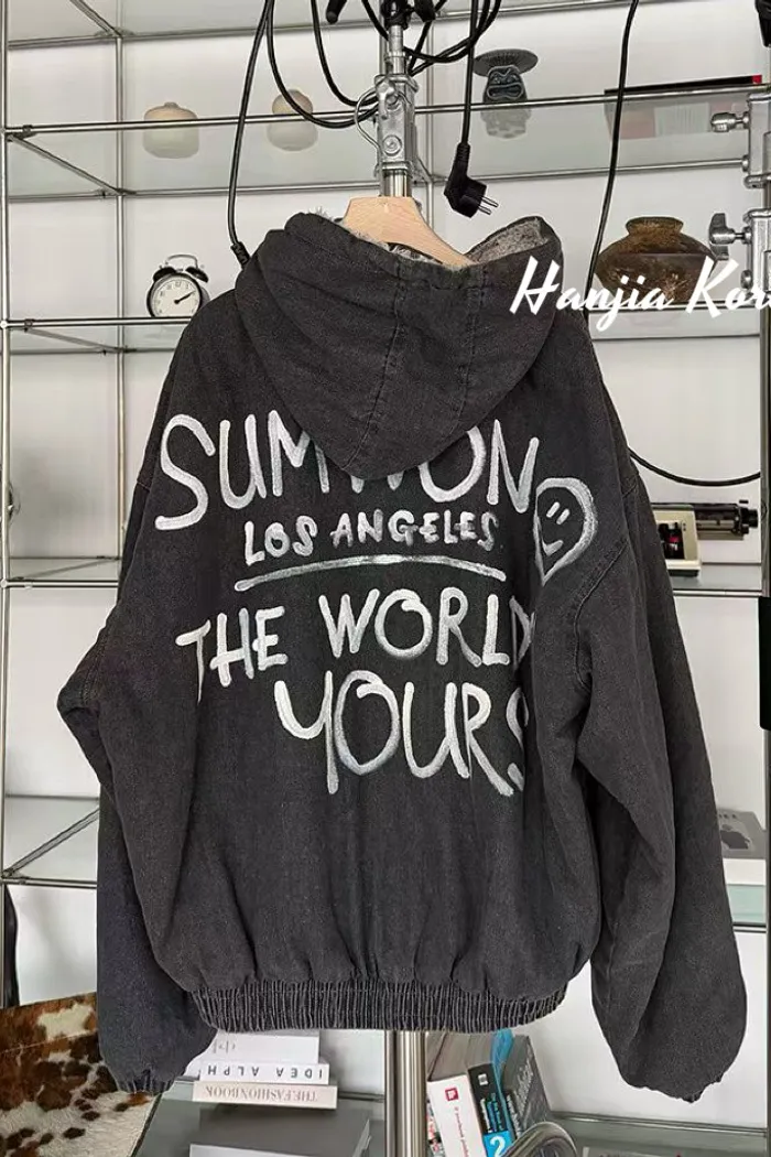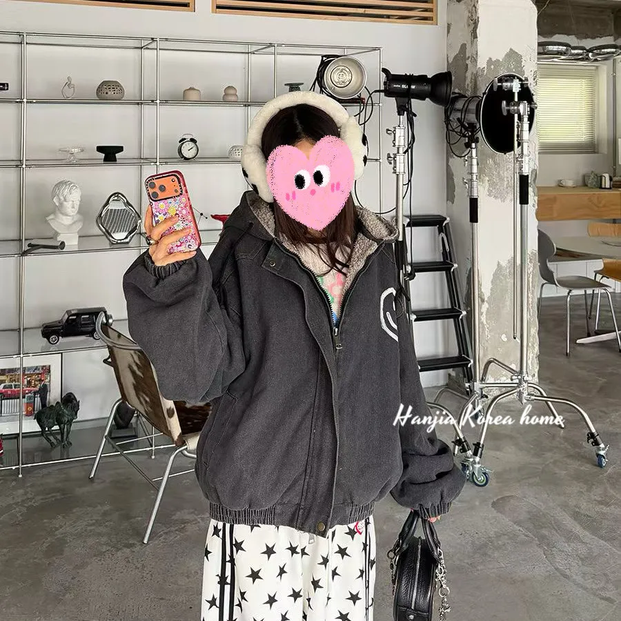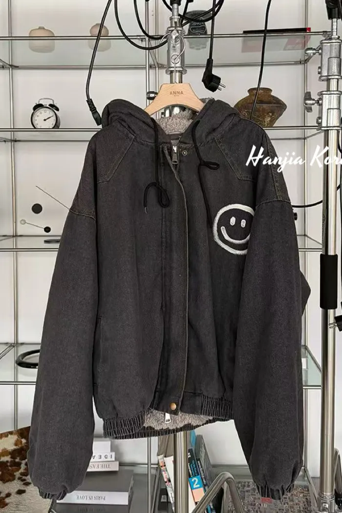 笑臉塗鴉內毛毛拉練連帽外套