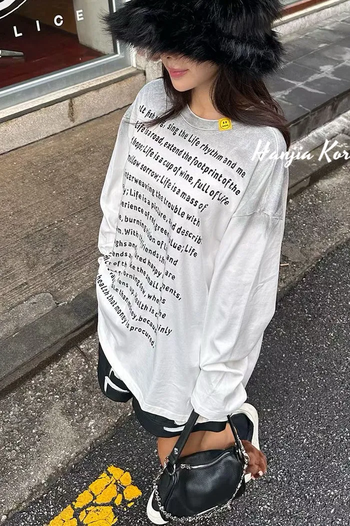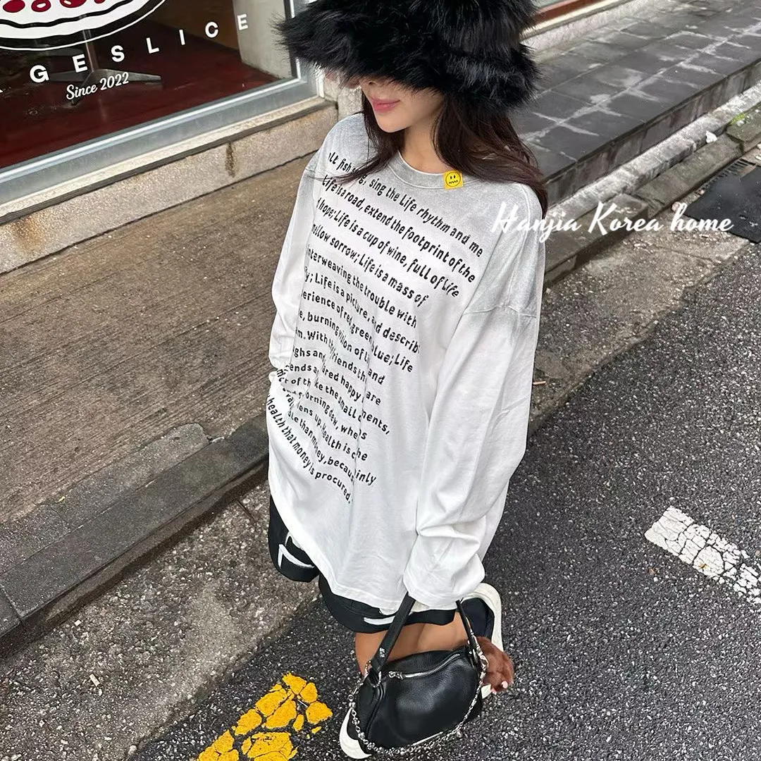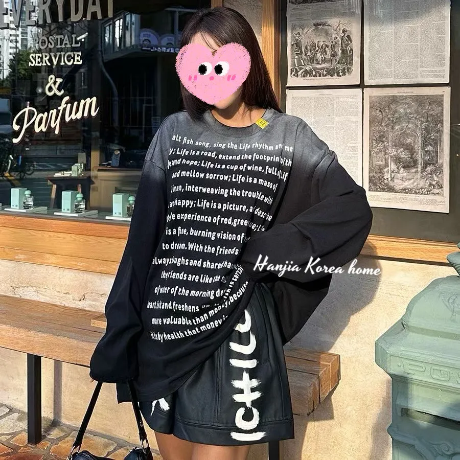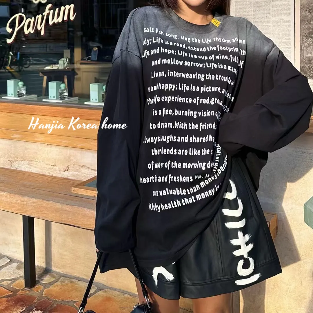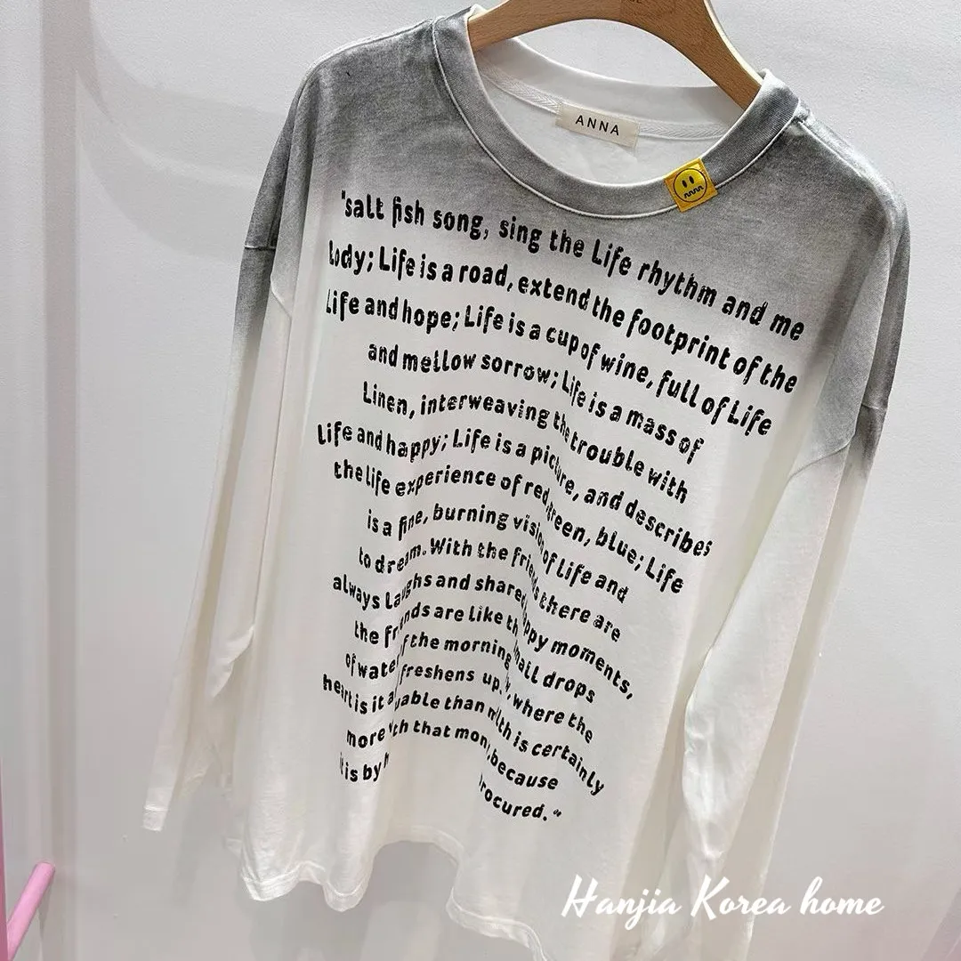 漸層色英文字長版上衣